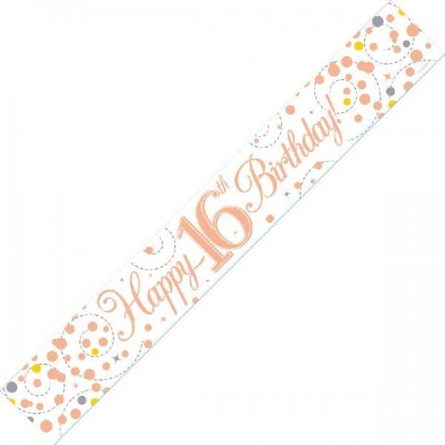 Sparkling Fizz 16th Rose Gold Holographic Birthday Banner