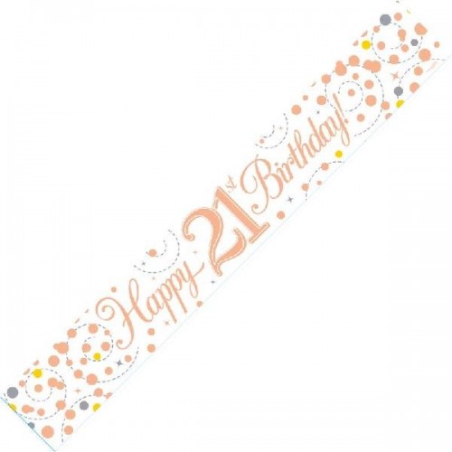 Sparkling Fizz 21st Rose Gold Holographic Birthday Banner