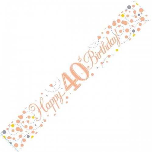 Sparkling Fizz 40th Rose Gold Holographic Birthday Banner