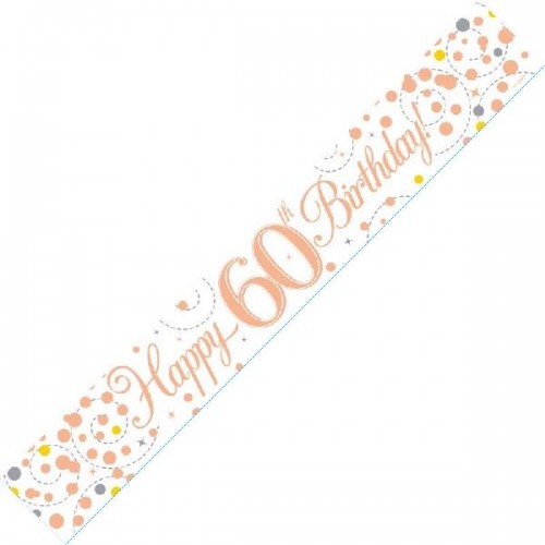 Sparkling Fizz 60th Rose Gold Holographic Birthday Banner