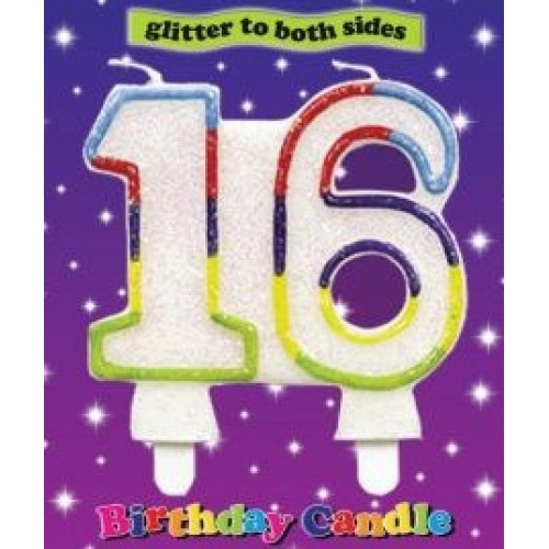 Rainbow Glitter Age 16 Candle