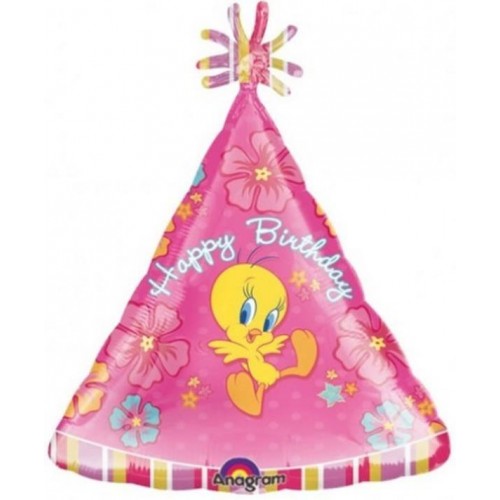 Tweetie Pie Personalisable Pink Happy Birthday Hat shaped Balloon