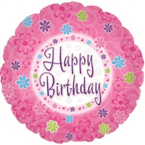 Pink Flowers Happy Birthday Balloon