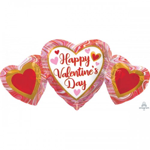 Marble Heart Trio Happy Valentine's Day Supershape Balloon