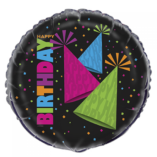 Neon Party Hats Happy Birthday Balloon